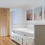 - ❓Is there a kitchen available at Sky View Family apartment for guest use?Yes, Sky View Family apartment is furnished with an equipped kitchenette and offers an electric kettle, a fridge, and glassware as well.